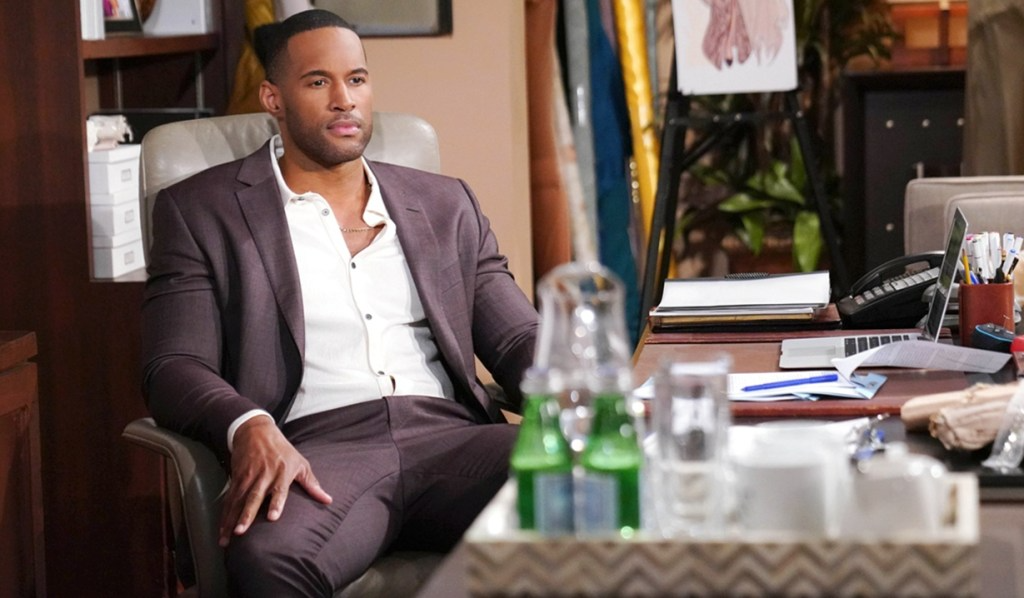 In Forrester’s design office, Carter bangs his fist on the desk. He can’t work for thinking about Hope, and flashes through memories of kissing her. Brooke walks in and says he seems distracted. She’s not trying to pry. Carter admits he was thinking about Hope.